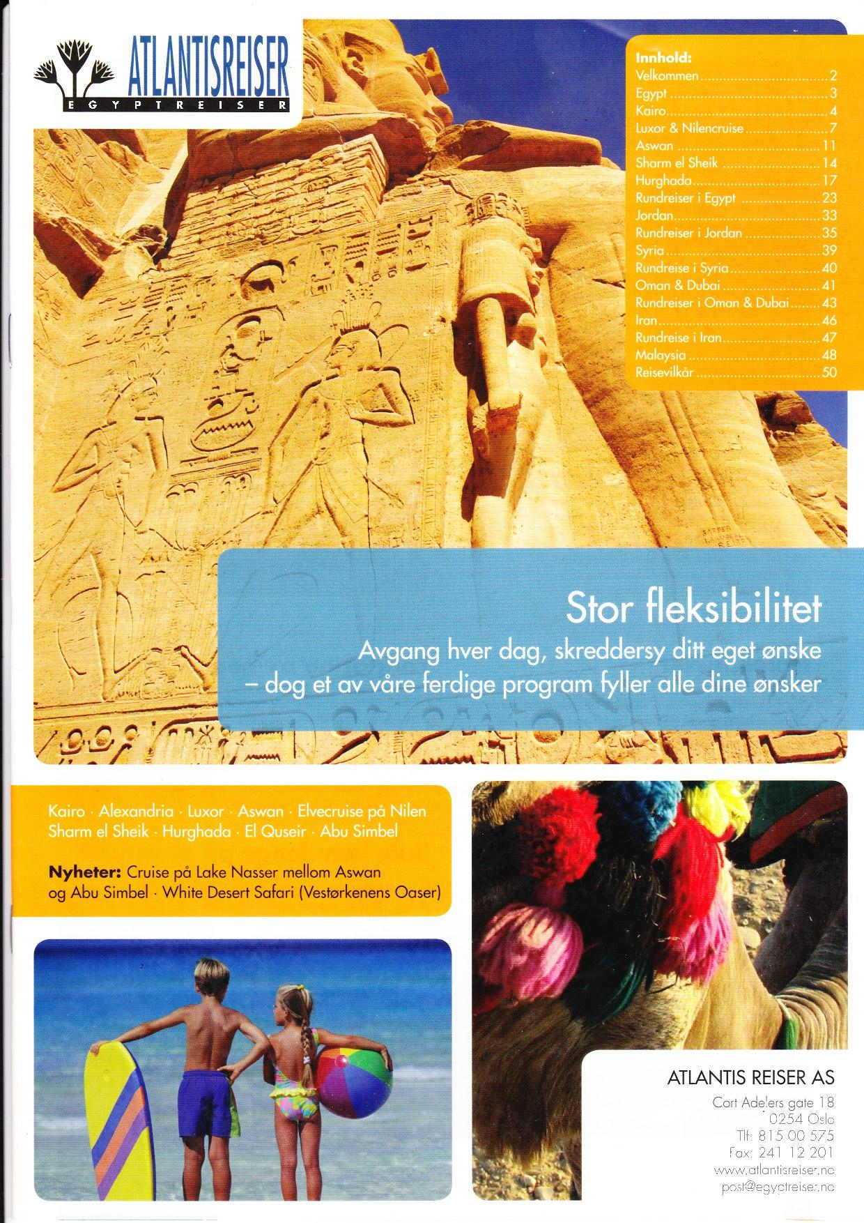 I over 25 år har Egypt Reiser / Atlantis Reiser arrangert rundreiser med hovedvekt på historie og kultur. Fremdeles er Egypt vår hoved-destinasjon. Vi legger vekt på at våre reisende skal få oppleve det som er spesielt for en destinasjon, uten å måtte bruke mye tid på planlegging. Atlantis Reiser setter i sammen rundreiser med opplevelser som passer både for lommebok og feriedager.